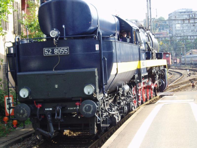 Dampflok-Besichtigung im Bhf WinterthurDas war vielleicht ein Ereignis: Schon einige Wochen vorher hatten wir geplant, mit diesem "Sonderzug" zu fahren. Leider war es uns doch etwas zu teuer. Aber vom Reiseprogramm her kannten wir ja den Fahrplan mit allen Haltestellen. Im Bahnhof Winterthur war ein längerer Aufenthalt geplant, das wäre doch zumindest eine Gelegenheit, die Lok aus der Nähe bewundern und fotografieren zu können. Meine Kinder waren natürlich sofort begeistert, zumal es sich ja um eine echte Dampflok handelte! Endlich war der Tag gekommen. Jetzt hiess es bei Zeiten aufstehen! Der Bahnhof Winterthur ist allerdings nicht weit weg, so dauerte die Anfahrt keine halbe Stunde. Die vorderen Gleise sind für die schnellen Züge reserviert, die mittleren werden von Regionalzügen benutzt. Also begaben wir uns - ohne das Gleis zu kennen - zu einem der hintersten Gleisen. Dort warteten wir eine Weile. Da kam sie, schnaubend und dampfend direkt auf uns zu, so als wäre sie nur nur unseretwegen unterwegs. Infos zu den Sonderfahrten mit dieser imposanten Lok finden Sie auf den RailEvent Seiten. |